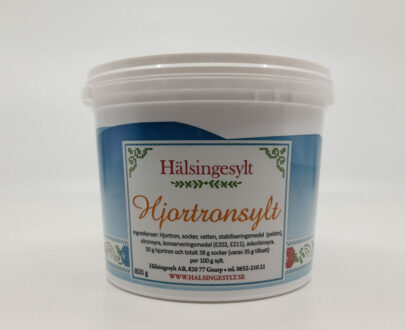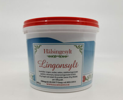 35g lingon och totalt 38g socker (varav 33g tillsatt) per 100g sylt