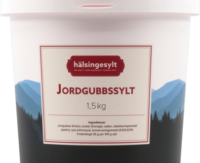 35 gram jordgubbar och totalt 29 gram socker per 100 gram sylt