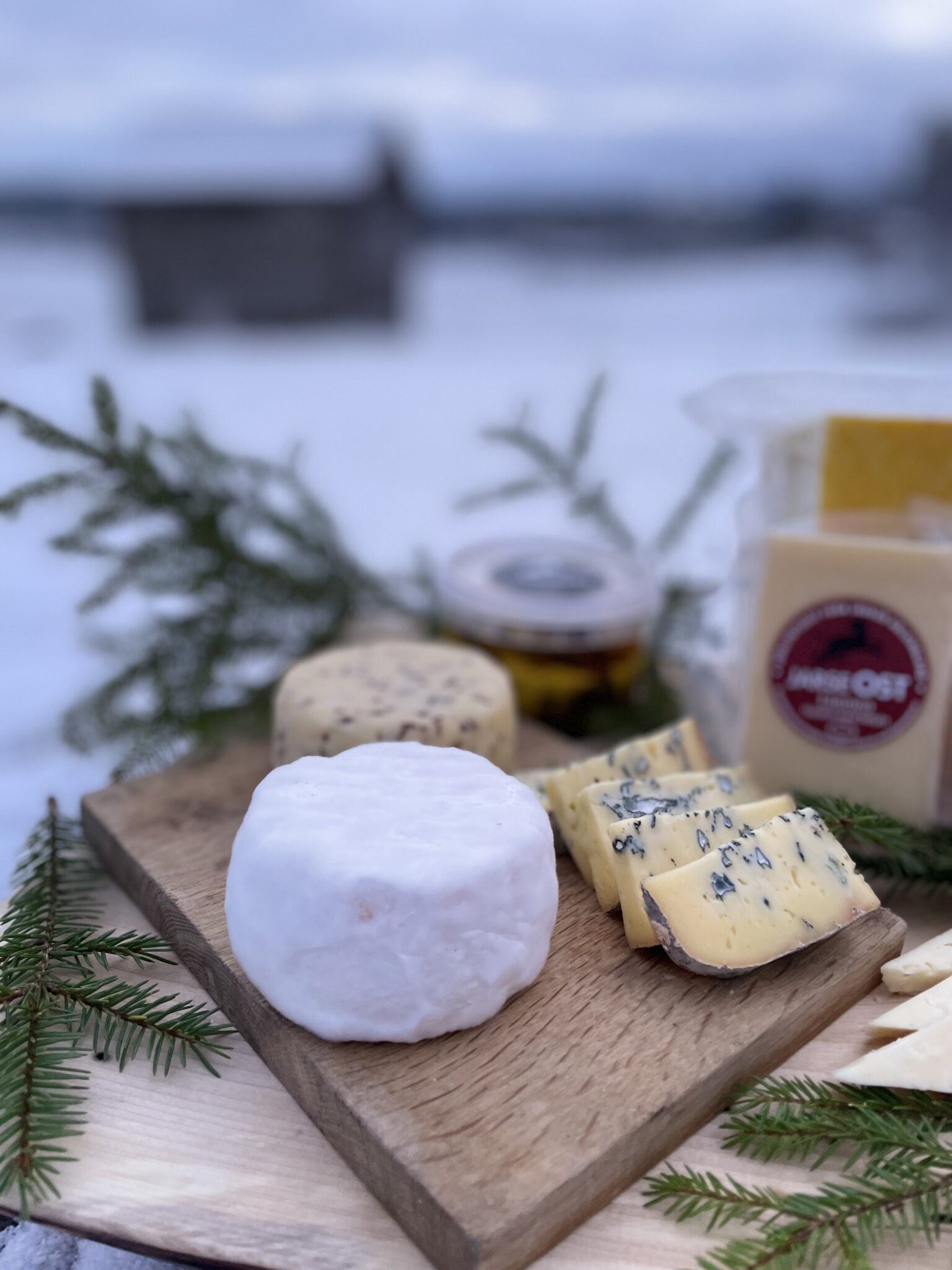 Vitmögelost, Blåmögelost och Hårdost ystade av ekologisk komjölk vid Jarseost gårdsmejeri. (Cambolina, Våga Blå eller Änga Grön och Linnea) Förpackad för restaurang, 1 kg av varje sort.